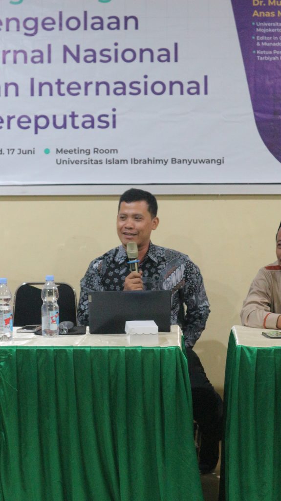 BANYUWANGI – LPPM Universitas Islam Ibrahimy Banyuwangi (UNIIB) melaksanakan Upgrading Pengelolaan Jurnal Ilmiah Nasional dan Internasional Bereputasi, yang diselenggarakan dengan tujuan untuk meningkatkan kualitas jurnal ilmiah UNIIB dengan Narasumber Dr. Muhammad Anas Maarif, M.Pd. Acara ini berlansung di Meeting Room Univeritas Islam brahimy Banyuwangi, pukul 10:30 WIB pada Senin, (16/06/25) dihadiri oleh para Pimpinan, Ketua LPPM, dan pengelola jurnal UNIIB.