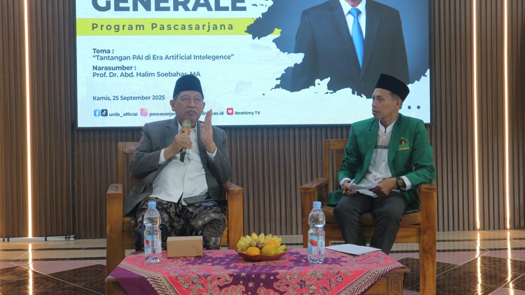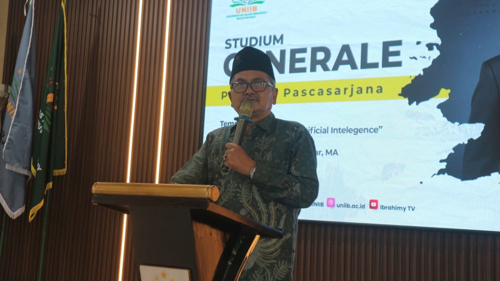BANYUWANGI – ProgramPascasarjana Universitas Islam Ibrahimy Banyuwangi (UNIIB) menyoroti tantangan Pendidikan Agama Islam (PAI) di era Artificial Intelligence (AI) sebagai upaya merespons perkembangan teknologi saat ini.  Dalam hal ini, Pascasarjana menuangkannya dalam kegiatan Studium Generale yang diselenggarakan pada Kamis siang (25/9/25) pukul 13.00 WIB bertempat di Auditorium KHR. As’ad Syamsul Arifin UNIIB.