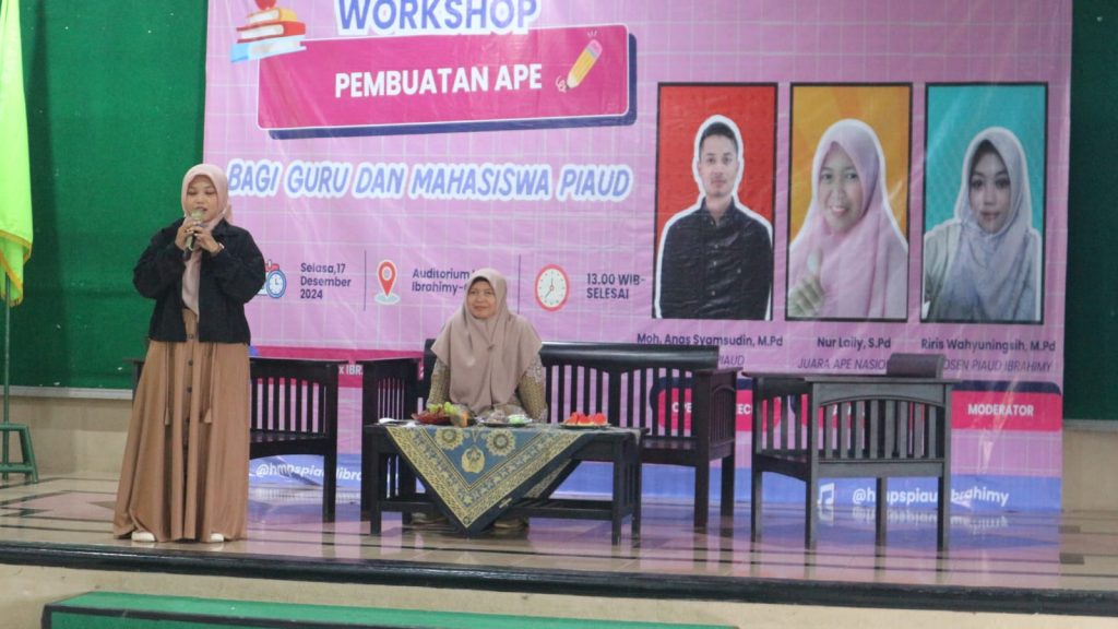 - Riris Wahyuningsih, M.Pd, dosen Prodi PIAUD Universitas Islam Ibrahimy, yang membawakan materi terkait konsep dan pentingnya APE dalam pembelajaran anak usia dini.
